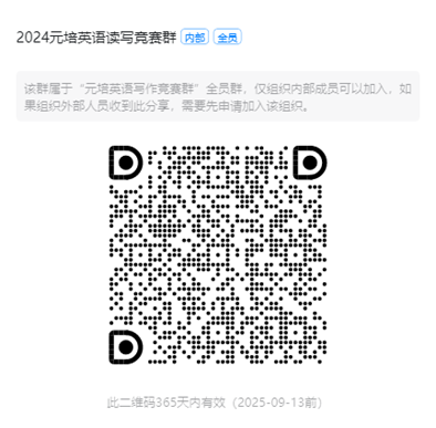 另请已报名同学扫描钉钉群二维码,加入2024元培英语读写竞赛群