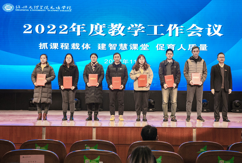 大会表彰了学院2022年课程思政教学优秀案例、学院2022年“互联网+教学”优秀案例、绍兴市第二届“越讲越响”课程思政说课比赛院内选拔赛获奖教师、学院第三届教师教学创新大赛获奖教师、2021—2022学年外聘教师教学优秀奖、学院第六届“教坛新秀”奖。