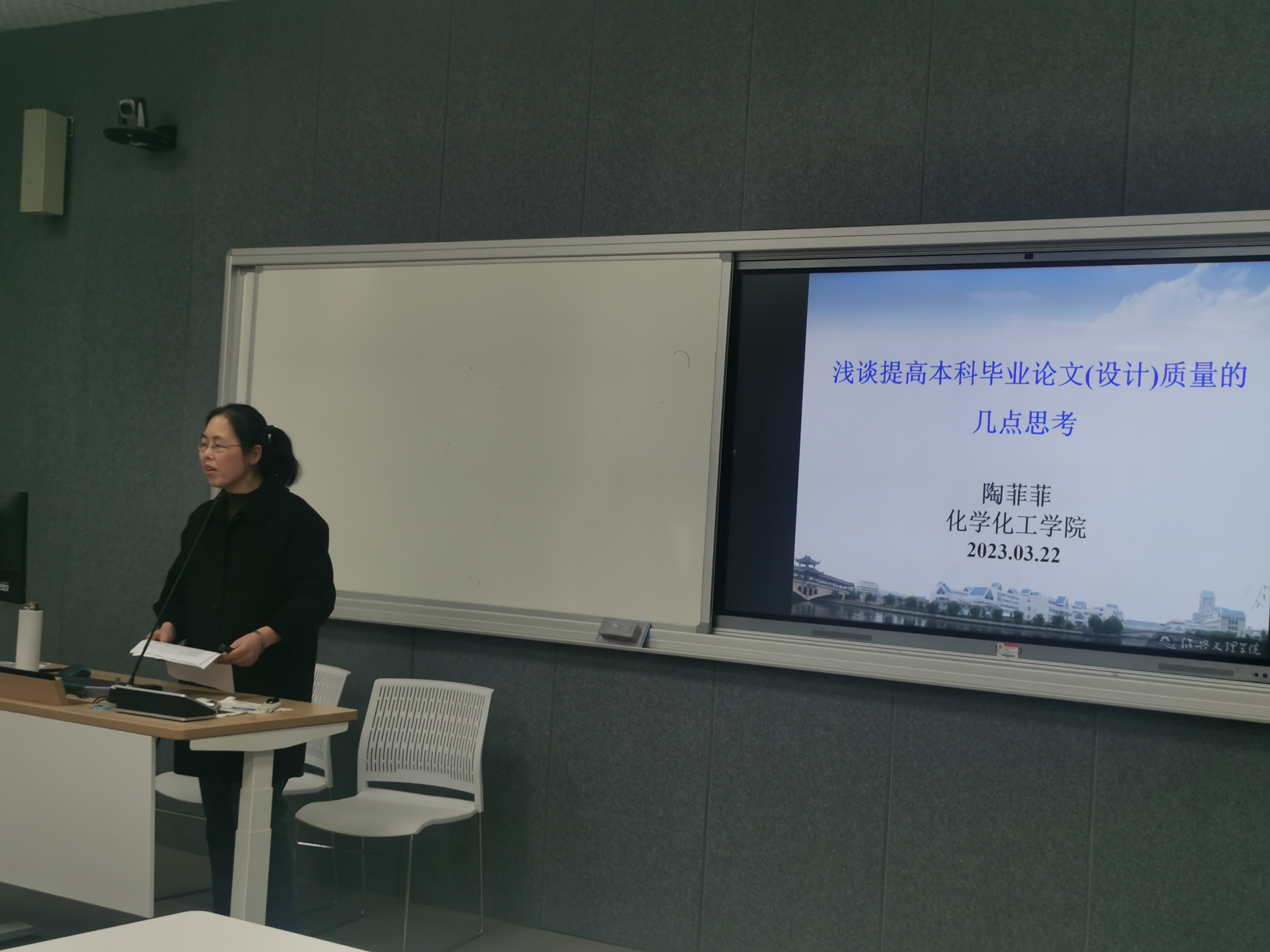 3月22日下午学院教师教学发展中心邀请了绍兴文理学院陶菲菲教授、学院教学督导委员会陆仲坚教授作“浅谈提高本科毕业论文(设计)质量的几点思考”主题讲座,各分院教学院长、基层教学组织负责人、专业负责人、40周岁及以下青年教师50多人参加讲座。讲座由任荣老师主持,李黎副院长出席本次讲座。