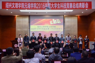 教务处朱磊副处长对我院2016年度大学生科技竞赛取得的成绩和科技竞赛工作经验进行了总结。2016年我院科技竞赛成绩喜人,在参加由浙江省教育厅主办的28项大学生科技竞赛项目中,共有26个竞赛项目82组获奖,获奖学生数达303人,其中省特等奖1组,一等奖12组,省二等奖21组,省三等奖48组,竞赛成绩在省内22所独立学院中排名第3,较2015年排名上升3位。其中,多项竞赛荣获国家级奖项:大学生数学建模竞赛获国家一等奖2组;大学生结构设计竞赛获国家二等奖1组;全国大学生电子商务竞赛和中国“互联网+”大学生创新创业大赛各获得国家级三等奖1组。此外,大学生生命科学竞赛、大学生英语写作竞赛等都实现了历史性的突破。同时,在由绍兴市教育局主办的大学生科技竞赛中,我院学生再创佳绩,成绩较2015年有了大幅提高。朱磊副处长指出,师生合力协作、系部、基地促力发展、学院通力支持是推进我院2016年度大学生科技竞赛取得辉煌的关键性因素,2017年学院将从“加大宣传力度、扩大学生参与度、提升教师指导水平、完善考核评价机制”等方面进一步推进科技竞赛工作。