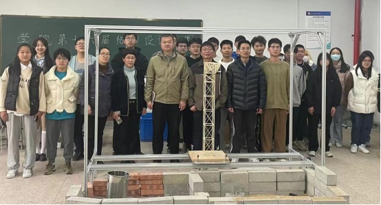 参赛选手在赛前做了充分准备,经过学院结构建模协会的培训,基本掌握了参赛所需的知识与技能。凭借丰富知识储备以及平时的练习,选手们结合赛题能将自己的想法转为现实,设计出各具特色的塔吊结构模型。经个一小时的激烈角逐,裁判方对各组结果进行了模型展示与加载测验,并根据加载重量等进行计算排名。最终取一等奖1组,二等奖2组,三等奖6组,比赛获奖名单如下: