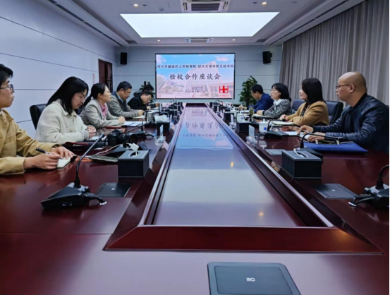 3月17日下午,学院党委副书记、纪委书记俞国芬带队前往绍兴市越城区人民检察院举办检校共建合作座谈会。越城区人民检察院检察长周江、副检察长宋斌帅、副检察长章丹、政治部副主任胡鹏城以及政治部干警等参加,梁柏台法学院党政主要负责人及教师代表等出席会议。