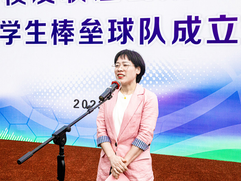 绍兴市奥体中心主任尹铁雄宣布“学院大学生棒垒球队”开棒