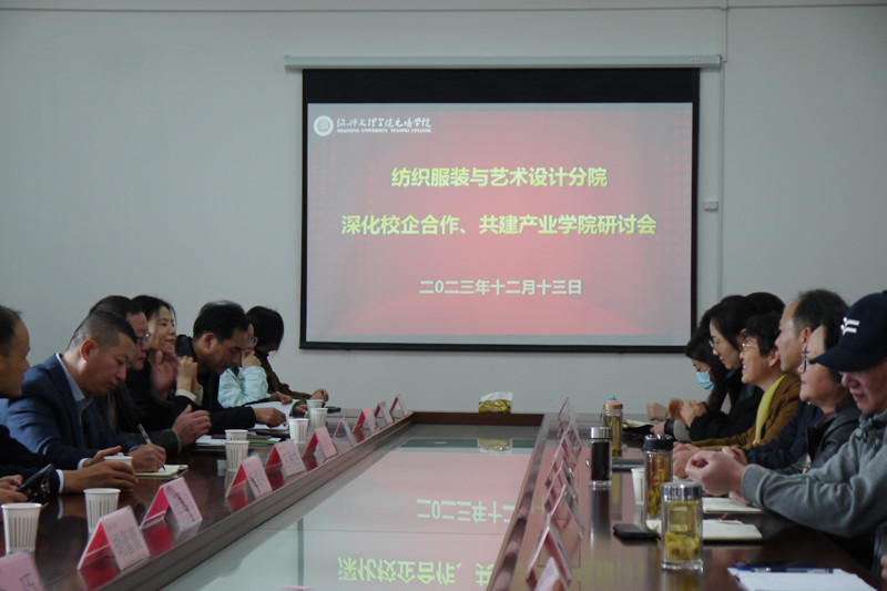 2月13日下午,纺织服装与艺术设计分院深化校企合作暨共建产业学院研讨会在6号楼201会议室召开。学院党委副书记石旭明、教学总督导奚柏君、国家面料馆馆长王苏芳、绍兴市中小纺织企业促进会秘书长王利生、绍兴永俊纺织品有限公司董事长施建海等企业家代表、分院部分师生出席会议。会议由分院负责人主持。