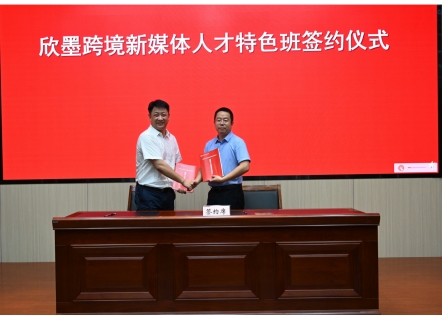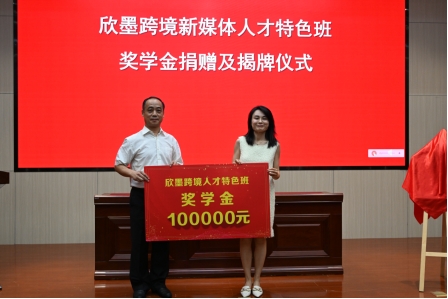 仪式上,学院副院长周思红和欣墨集团副董事长黄狄来一同为欣墨跨境新媒体人才特色班揭牌。语言文学分院朱磊和欣墨集团人事总监张更伟签订人才特色班合作协议。欣墨集团向学院捐赠十万元奖学金。特色班带队教师毛勇玲介绍了人才培养方案。欣墨集团企业导师李沈佳和特色班学员代表李玲燏分别作了发言。