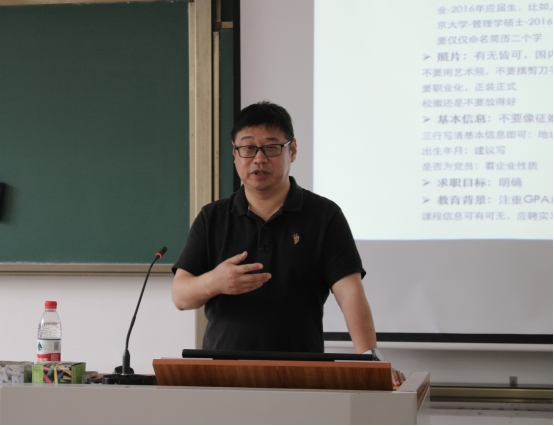 讲座伊始,苏磊阐述了简历的含义及基本逻辑。他指出,简历不仅是求职者个人经历和技能的展示窗口,更是企业了解求职者的第一手资料。因此,简历的制作要遵循清晰、简洁、真实的原则。