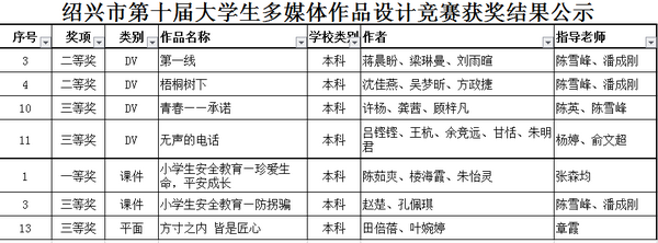 近日,绍兴市第十届大学生多媒体作品设计竞赛结果揭晓,我院在本次比赛中获得较好成绩,其中一等奖一组,二等奖两组,三等奖四组,作品集中在课件、DV和平面三大类。我系传播、汉语言专业同学均有收获。此次竞赛我院学生参与面较广,计算机、视觉传达等专业都有学生参与,参赛人数、作品数量和质量都比上一年度有提高。