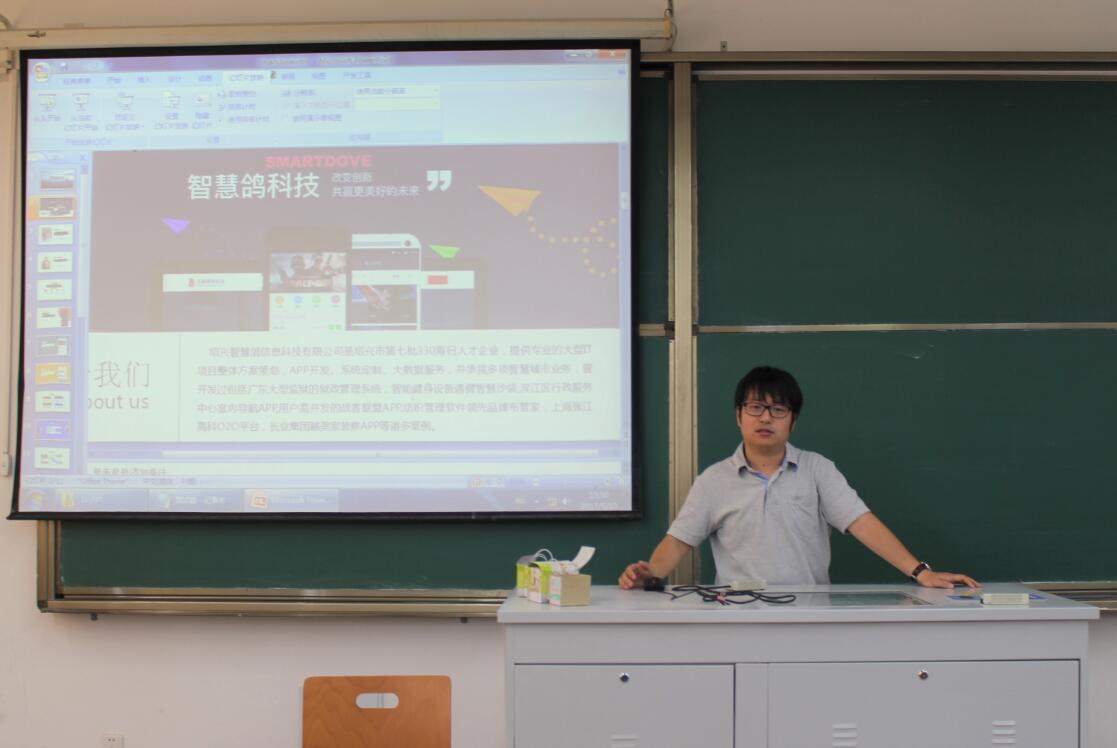 充满力量的青春让我们去寻求无限的可能,而可能,其实就在身边。智慧鸽便创造了这个机会。5月10日下午3时30分,绍兴智慧鸽信息科技有限公司来到我系,于教学楼6―106举办宣讲会,让同学们更了解智慧鸽,带领同学们感受青春的力量。