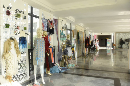 4月13日,我系服装与服饰设计1401班《针织服装设计》课程作品展在艺术大厅展出。