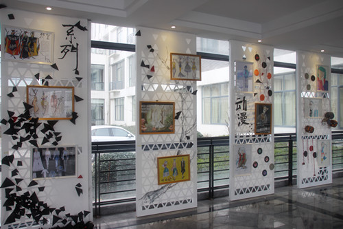 针对本课程艺工结合的要求,课程后期学生根据自己的喜好、审美、个性的想法来绘制作品,课程结束分组进行展厅的布置,使得学生能更好的培养自主创新能力。本次展览分为企业组、装饰组、动漫组、写实组、淡彩组和立体组等,不同主题的组展示了学生不同的审美角度,更完善深入的理解本课程的学习含义。