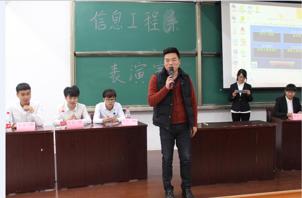唇枪舌战,辩赛场硝烟;口若悬河,理是非曲直。为提升学生思辨能力和创造力,丰富大学生课外生活,激发学生自主思考的能力,锻炼学生口才,我系于3月31日于5幢101举行信息工程系辩论友谊赛。