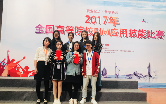 正是学生的刻苦、老师的努力、分院领导、学院领导的大力支持以及院办、教务处、资产处、财务处等各职能部门的协同合作,最终取得了专项一等、团队两个二等的优异成绩。本次竞赛,通过对学生创新意识的培养、BIM应用技能的训练、团队合作精神等综合素质的锻炼,体现了我院“全程育人”的办学理念,为我院开展创新教育和实践教学改革、推动学科创新活动起到了积极的示范作用。
