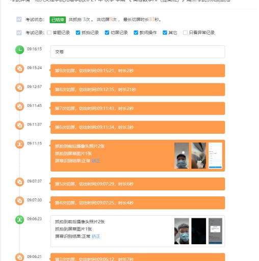 5. 监考教师要全程监控学生的考试情况,不定时拍摄学生的考试界面,及时处理考试中出现的问题,教师有权利检查学生的答题卷面。